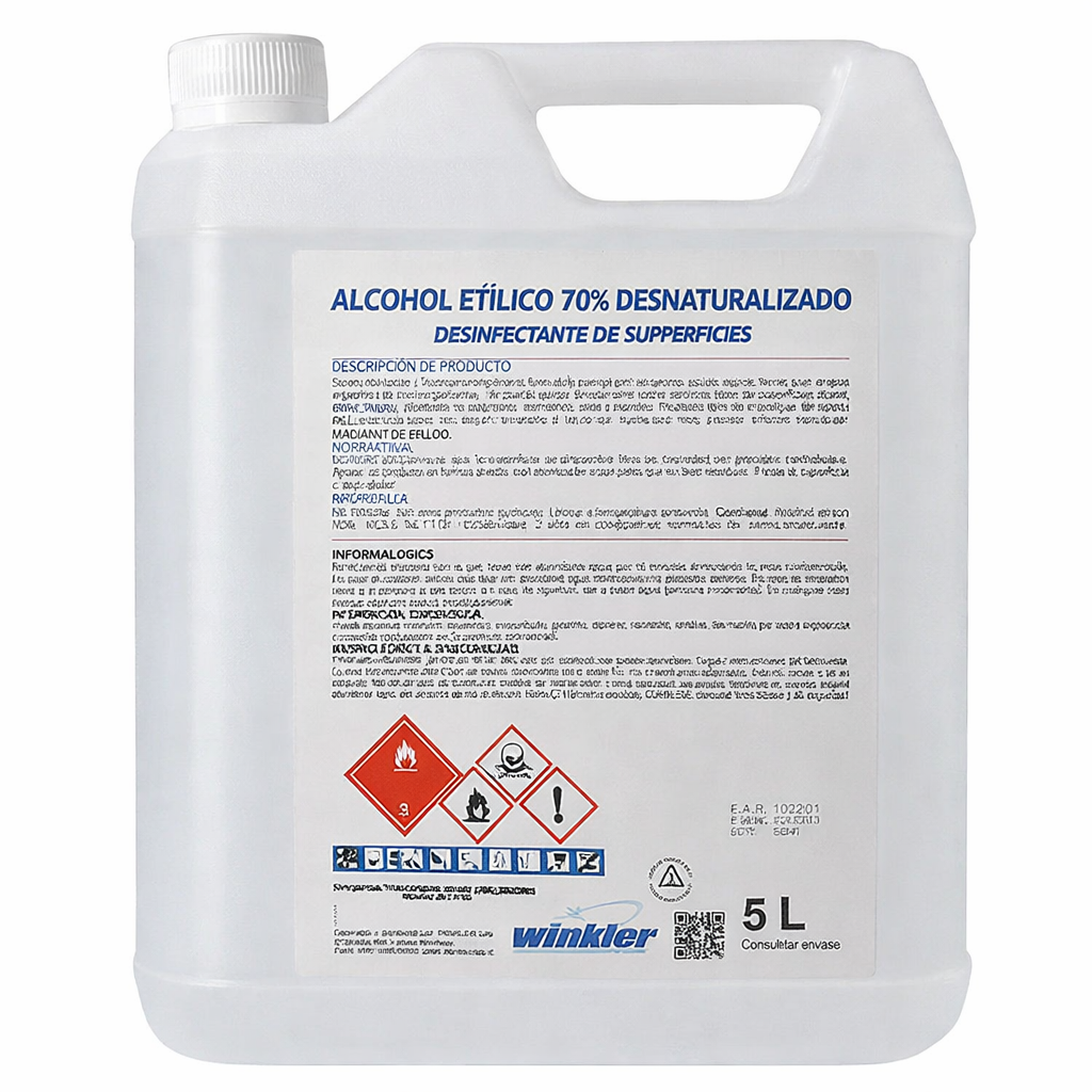 El alcohol líquido al 70% (alcohol etílico desnaturalizado) es el antiséptico y desinfectante más recomendado debido a su equilibrio óptimo entre alcohol y agua. A diferencia del alcohol de 96°, el de 70° penetra mejor en las paredes celulares de los microorganismos, permitiendo una eliminación más efectiva de bacterias, virus (incluyendo el SARS-CoV-2) y hongos.